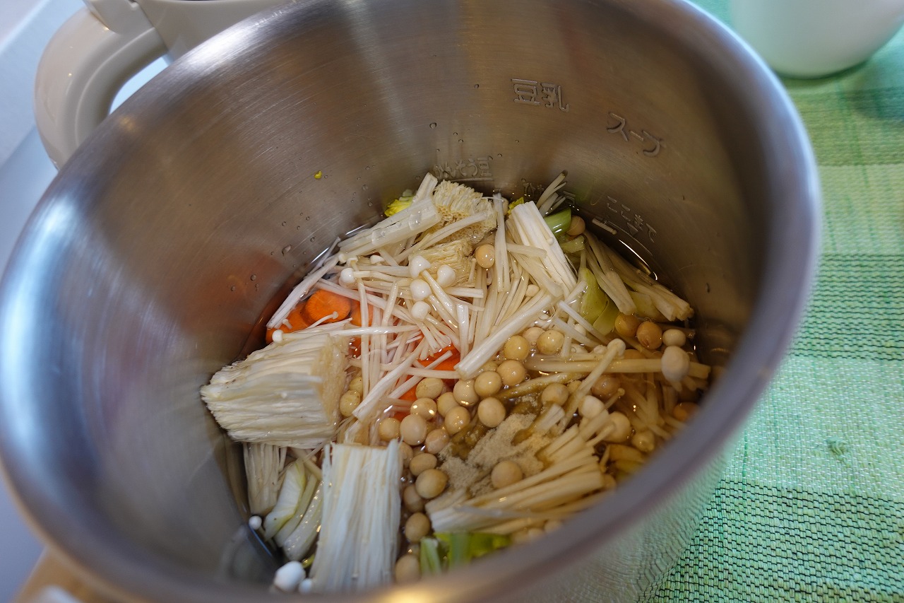 特徴の一つに、野菜の切れ端を使えることです。人参や大根の頭の部分、水に漬ければ葉が生えてきますよね。この部分を捨てるのはもったいない。もちろん皮も剥きません。おまけに生の乾燥した大豆を入れても約30分後には美味しいスープになるのです。また、粉砕する刃は取れるのでリゾットなども作れます。