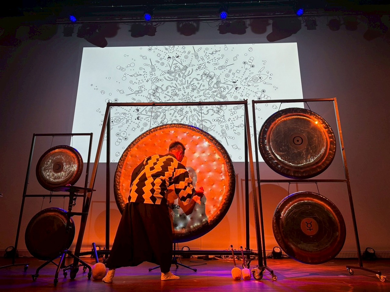 今回が初の東京開催となりましたが、開場とともに人々の熱気が満ち、空間は美しい波動に包まれていました。オープニングはアーティスト・水谷翔さんによる「ウルトラゴング」の音開き。まるで新時代の幕開けを告げるような荘厳な響きが、場の意識を一つにしました。